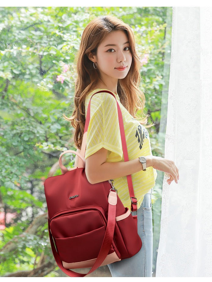 Elevate your everyday style with this eye-catching red fashion backpack featuring elegant beige accents. Designed with spacious compartments, it offers ample room for books, electronics, and essentials, while the ergonomically padded shoulder straps ensure all-day comfort. Whether for school, travel, or daily adventures, this versatile backpack combines practicality with timeless appeal. Dimensions: 16" x 12" x 6". Color: vibrant red with beige detailing.